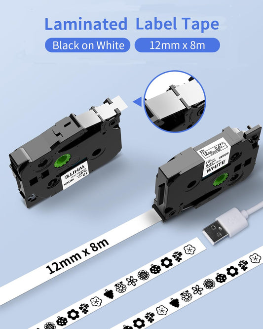 Upwinning Compatible Tze-231 Brother Label Tape 12mm for Brother Label Printer, Replace Brother P-Touch Tape 12mm 0.47 Laminated, Tze Tape 12mm for P-Touch 1000 H100R H110 H108 H101C H200, 3-Pack
