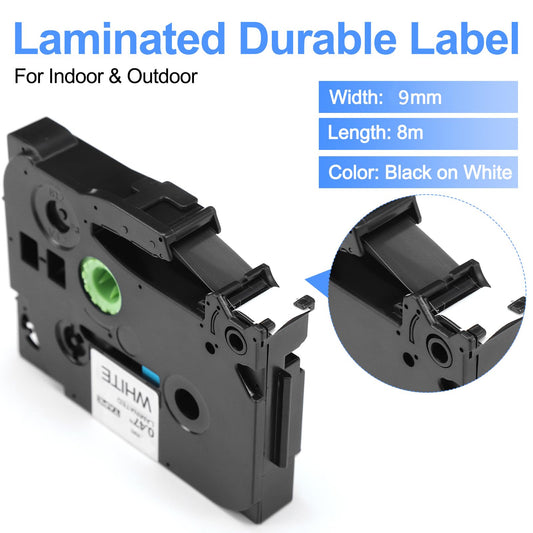 Compatibile con brother p touch nastro per etichette (Nero su Bianco, 18mm x 8m)