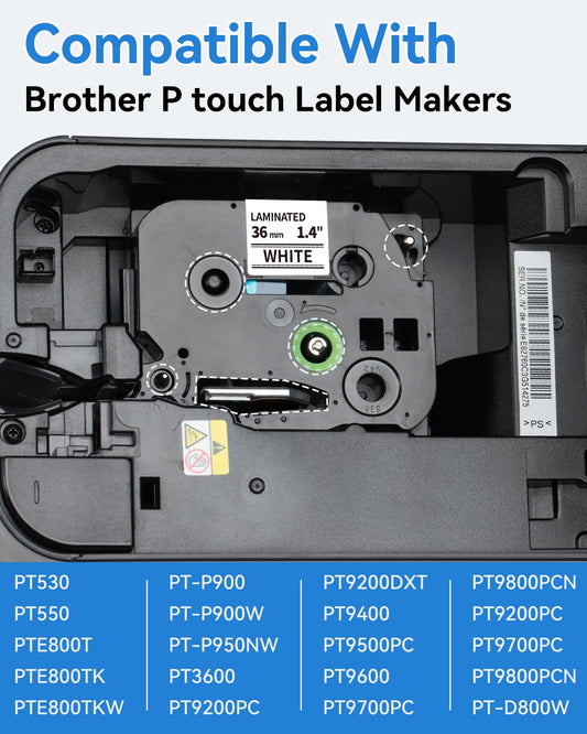 3x Upwinning Tze-261 Tze261 Ruban 36 mm Compatible pour Brother P touch Ruban 36 mm, Rechange Tze 36mm Ruban Noir sur Blanc pour étiqueteuse Brother P-touch CUBE Pro PT-P910BT PT-P950NW PT-P900W