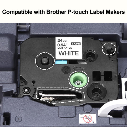 Upwinning AZe-251 Compatibile con Brother Nastro per Etichettatrice TZe-251 TZe251 24mm Nero su Bianco Laminato, Compatibile per Brother P-Touch 1830 2030 D600 E550W 750W, confezione da 4
