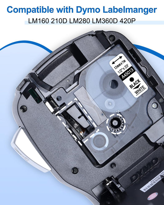 Upwinning 45013 Nastro per Etichette Compatibile con Dymo D1 45013 Natro 12mm x 7m S0720530 Nero su Bianco, Compatibile per Dymo Label Manager 160 210D 260P 280 360D 420P PnP 450 450D, Confezione da 2