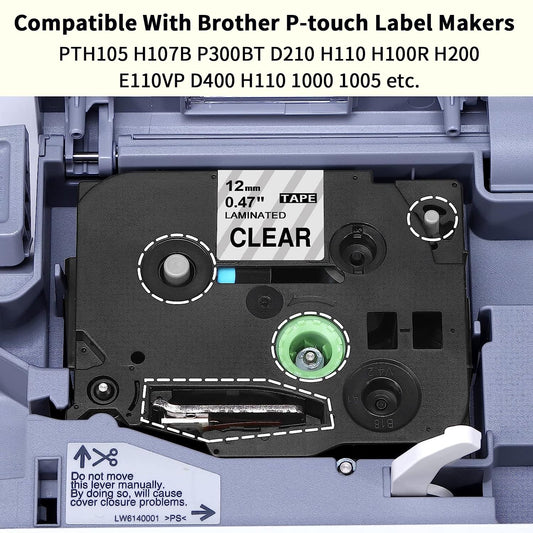 Compatible Tze 131 Tze-131 Ruban Transparent 12mm x 8m, Recharge Brother P touch Ruban Transparent 12mm x 8m Tze Clear pour P-Touch Étiqueteuses PT-E110 H107B H108G D200 D210 H100 P300BT 1010 1090